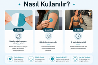 Temiz ve kuru bir cilt bölgesine (kolun içi, omuz, bilek veya sırt) yapıştır. 8 saate kadar cilt üzerinde kalır. Her uygulamada yer değiştirmeni öneririz.